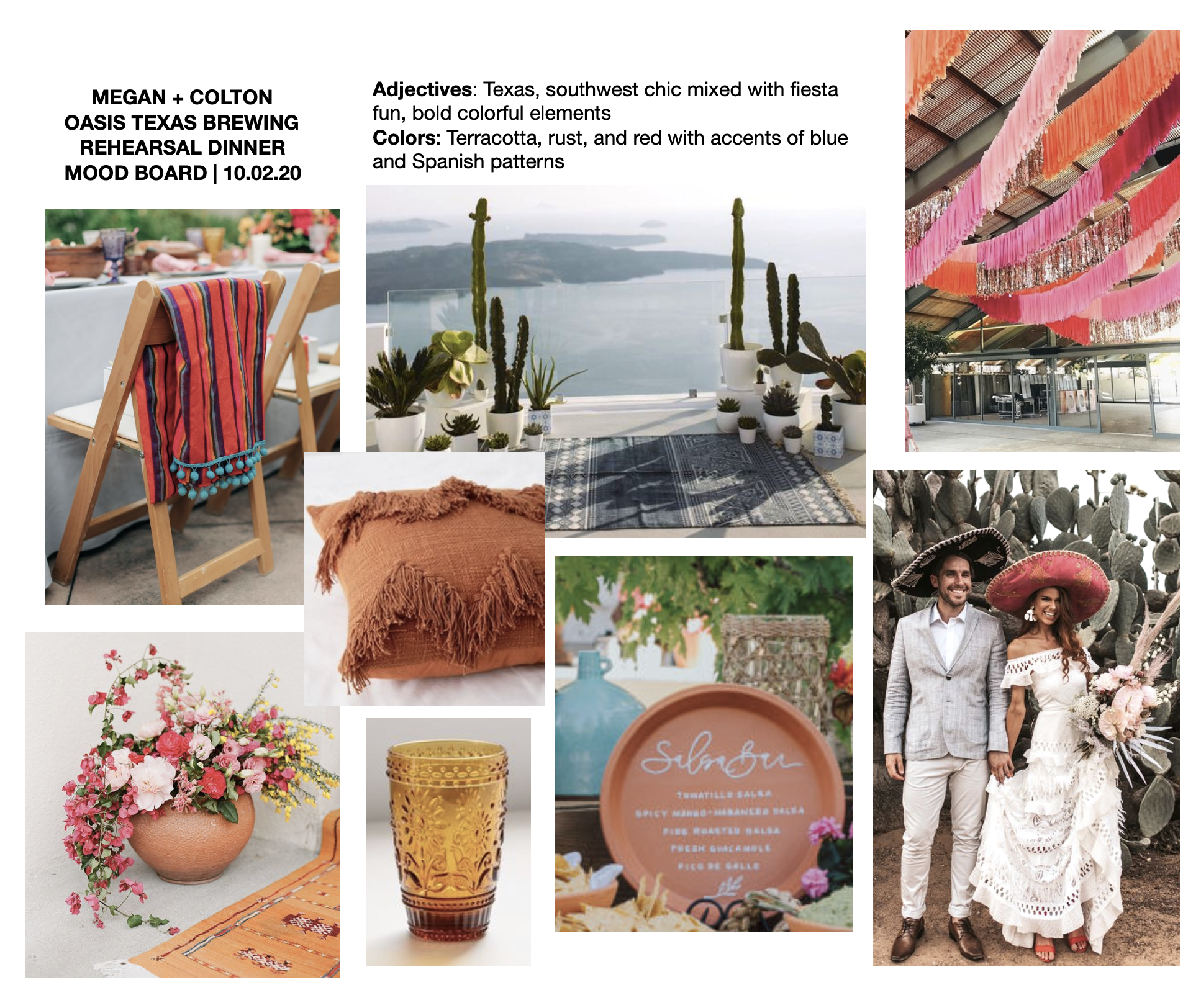 I was scrolling through Instagram stories late one night, as one does, when I came across a beautiful mood board Vanna from Blue Sparrow Events posted. The rich shades of pinks and oranges were definitely speaking to me, and I knew immediately that our streamers would be perfect, so I slid right on in to Vanna’s DMs to let her know about our streamer fringe services (she only knew us for balloons at that point!). She was thrilled we were now offering this decor, and shared it with the bride, Megan, the next day.